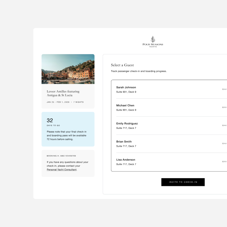 Most booking platforms are built around a single assumption: one person, one room, one payment. Four Seasons Yachts breaks all three.